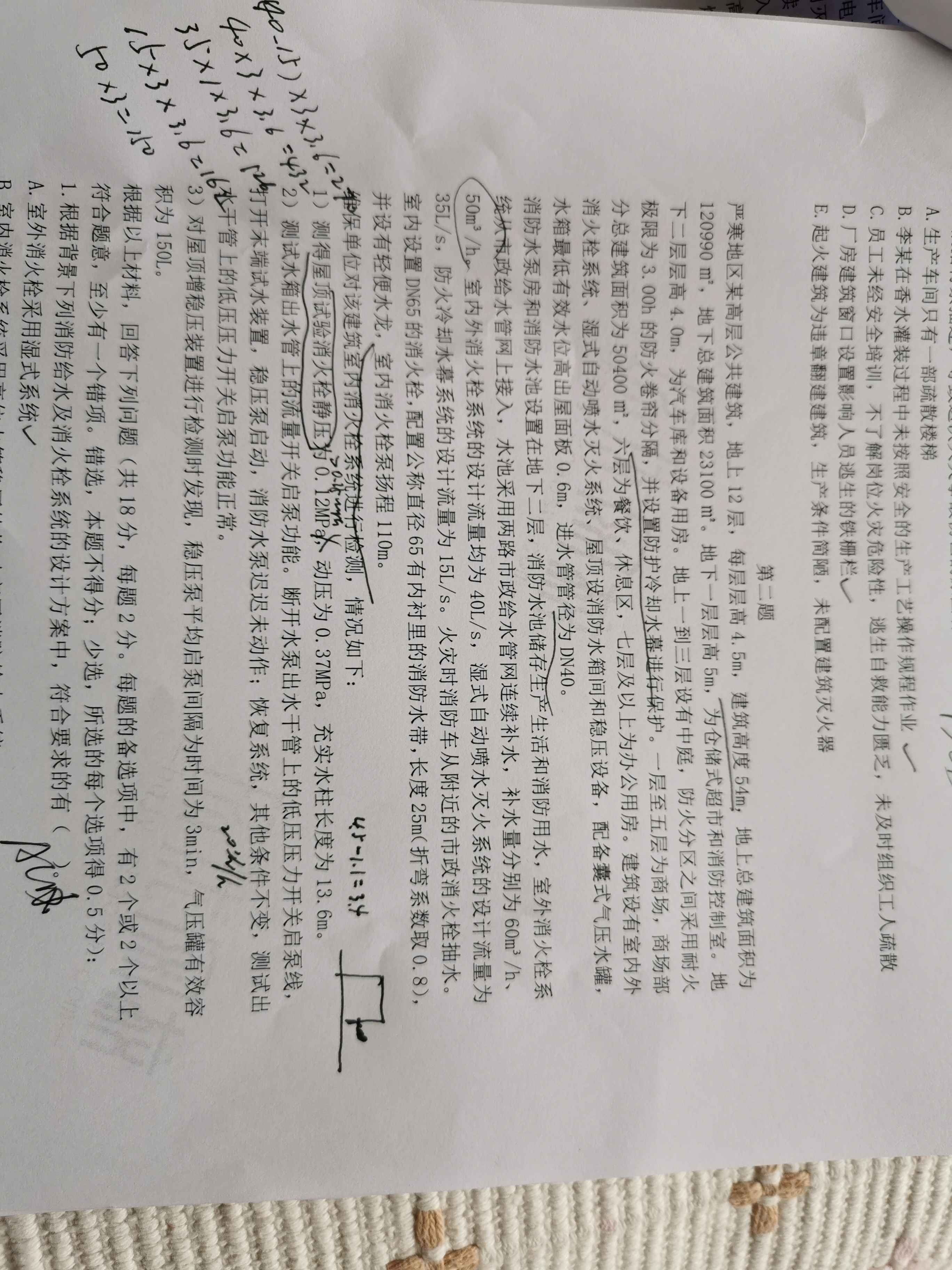 你好!請問這道題系統(tǒng)工作壓力值是多少,怎么計(jì)算?另外在計(jì)算消防水池有效容積時(shí),是取濕式系統(tǒng)和防護(hù)冷卻水幕其中一個(gè)最大的嗎?