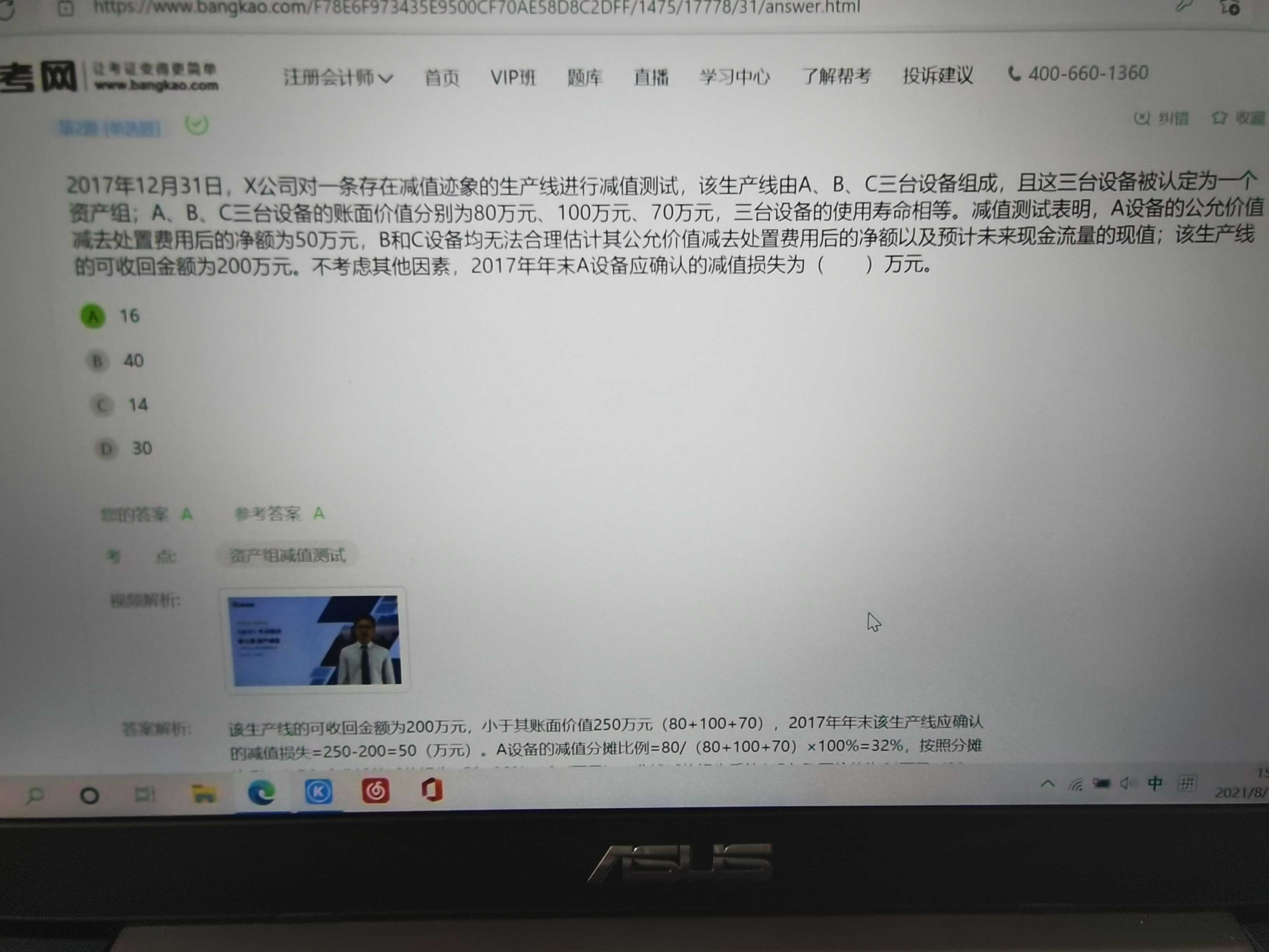 1. 當(dāng)資產(chǎn)的賬面價(jià)值超過其可回收金額時(shí),需要確認(rèn)資產(chǎn)減值損失。您提到的A設(shè)備,在確認(rèn)了16萬元的減值損失后,賬面價(jià)值降為64萬元,這是正確的會(huì)計(jì)處理。