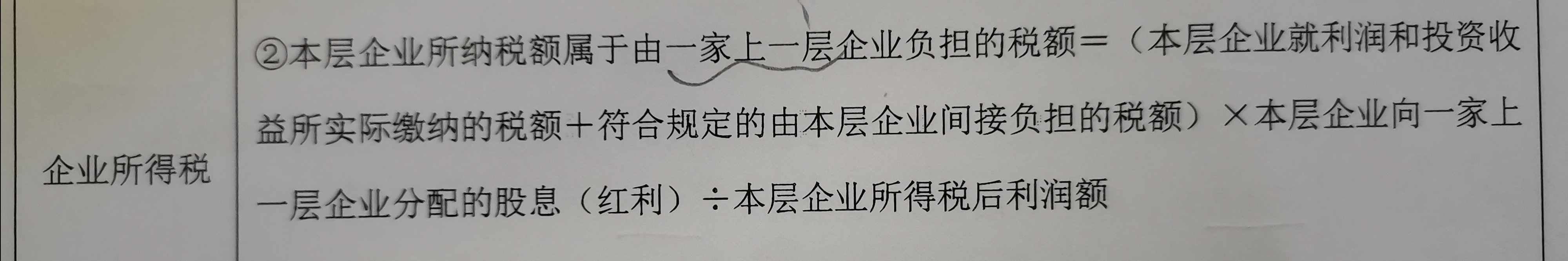\[ ext{應(yīng)納稅所得額} - ext{由一家上一層企業(yè)負(fù)擔(dān)的稅額} = ext{實(shí)際應(yīng)納稅額} \]